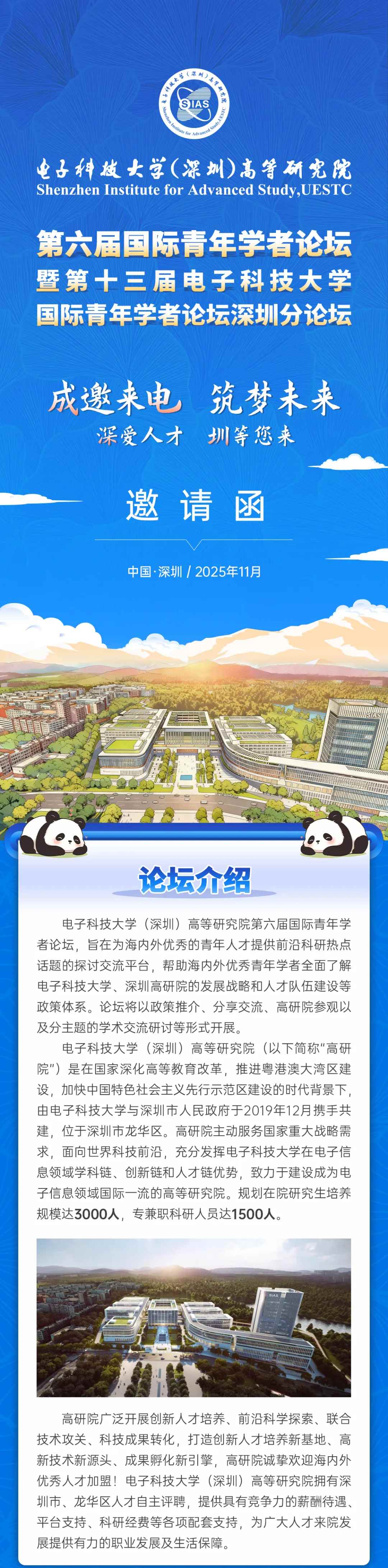 誠邀來深|電子科技大學(xué)(深圳)高等研究院第六屆國際青年學(xué)者論壇報(bào)名開啟!