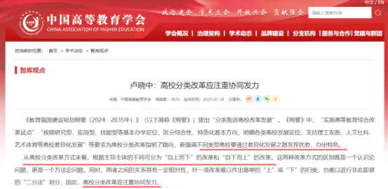 他指出,高校分類改革必須“協(xié)同發(fā)力”,既要依靠“自上而下”的精細(xì)政策引導(dǎo),也需激發(fā)“自下而上”的基層創(chuàng)新。